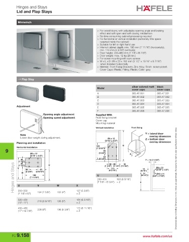 Hinges and Stays U W (3 3/8") 196 (2 9/16") W X U (4 5/16") X X (9/16") (3/8" x 7/16") Dimensional data not binding. Dimensions in mm, inches are approximate. We reserve the right to alter specifications without notice.